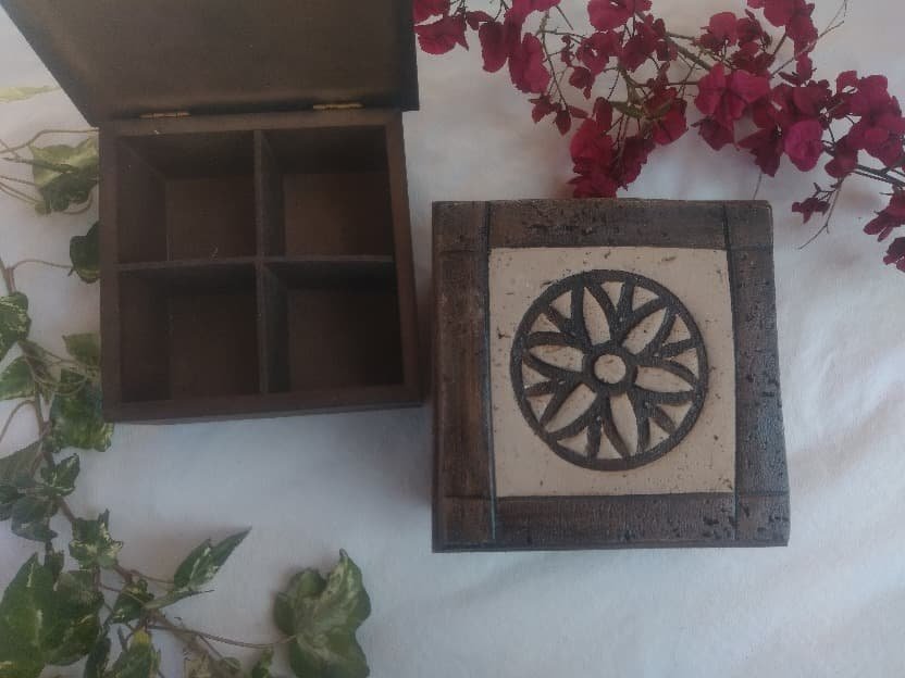 004 Caja de te x 4 de madera y pasta piedra