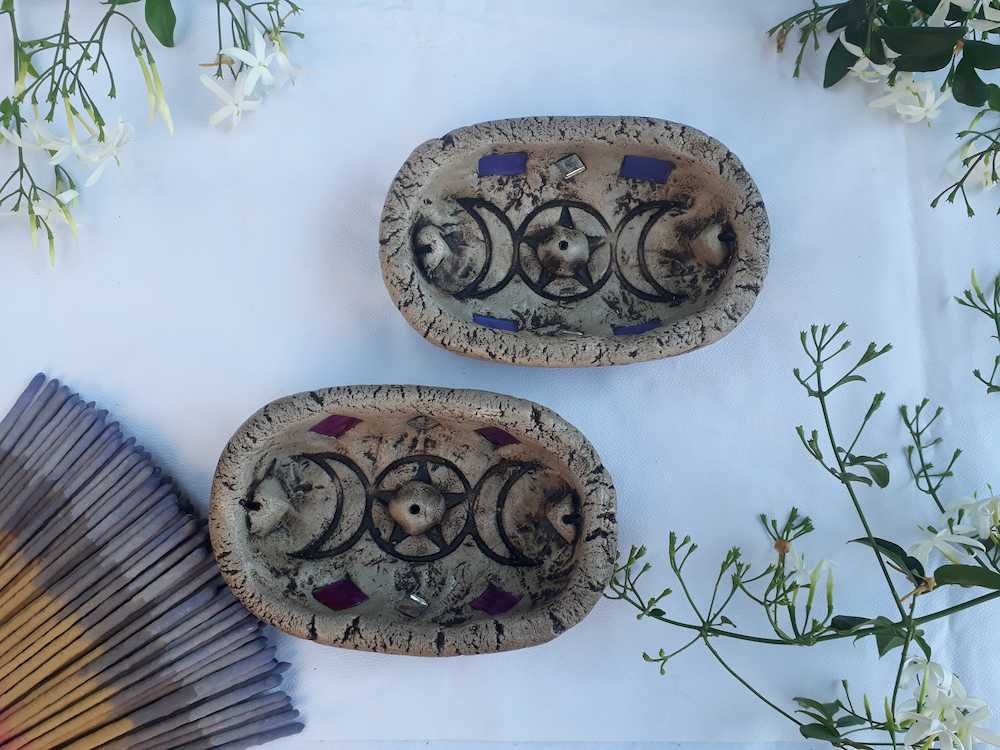 66-Porta sahumerio pasta piedra ovalado x3