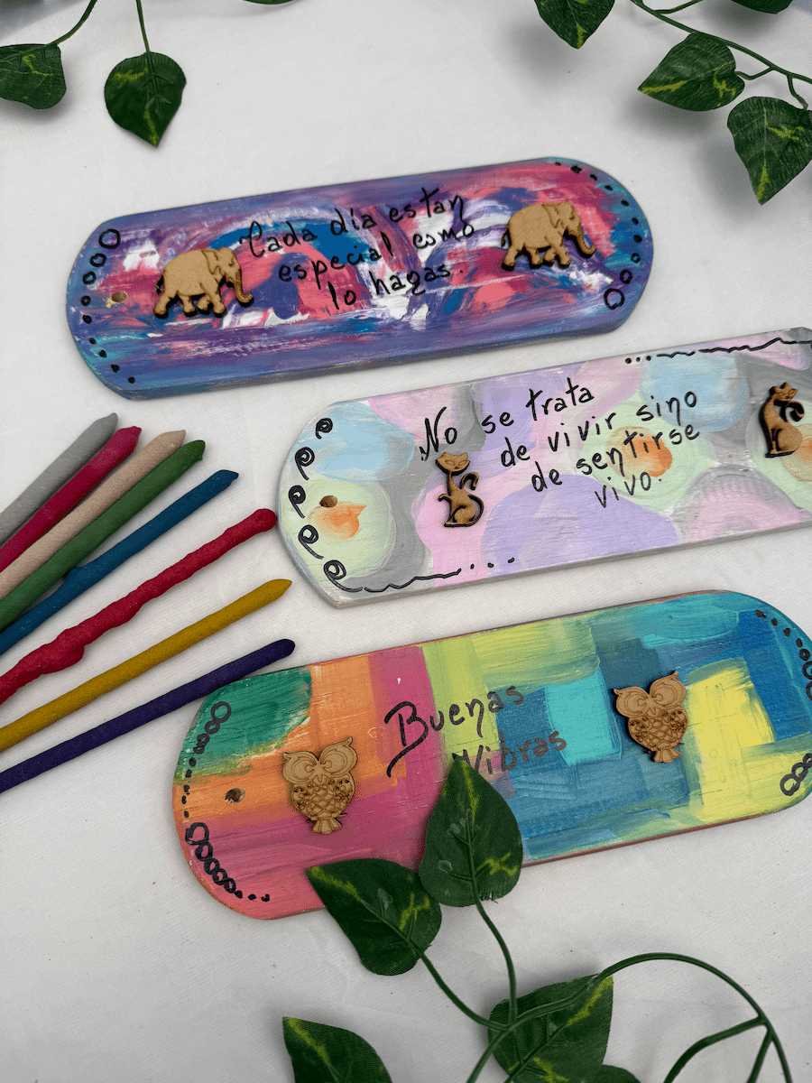 112 Porta sahumerio madera pintado con frase