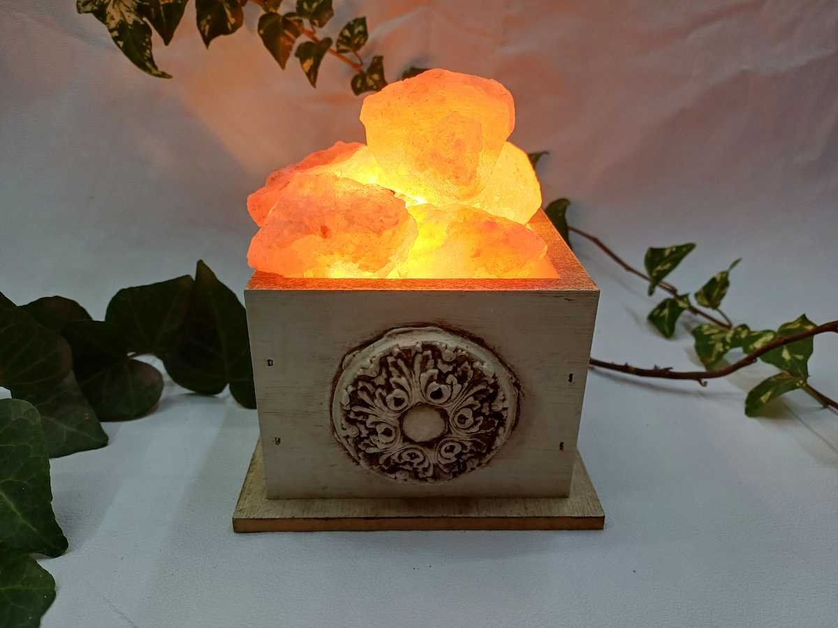 148-Cuenco madera vintage con sal y kit electrico