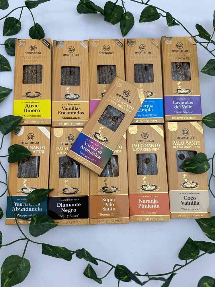 | Aromas | Lavandas del Valle, Super Palo Santo, Vainillas Encantadas, Coco Vainilla, Rosa Real, Variedad Aromatica, Yagra de la Abundancia, Naranja Pimienta, Diamante Negro, Energía Limpia, Atrae Dinero, Sandalo Hindu |